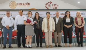 Ante la presencia de estudiantes, padres de familia y autoridades educativas federales y estatales, Lucía Aimé Castillo Pastor, secretaria de Educación de Tamaulipas, entregó tarjetas