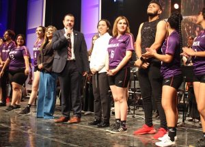 Al encabezar los festejos por el 50 aniversario de la Facultad de Música y Artes (FMA), el C. P. Guillermo Mendoza Cavazos, rector de la