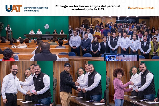 El C. P. Guillermo Mendoza Cavazos, rector de la Universidad Autónoma de Tamaulipas (UAT), presidió la ceremonia de entrega de estímulos económicos a hijos de profesores miembros del Sindicato Único de Trabajadores Académicos (SUTAUAT), en donde refrendó el compromiso de apoyar a la docencia e impulsar la superación del alumnado.