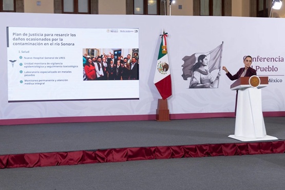 El plan de justicia para resarcir los daños ocasionados por la contaminación del río Sonora, dijo, incluye la construcción del nuevo hospital general de Ures, una unidad de monitoreo y vigilancia epidemiológica y seguimiento toxicológico, un laboratorio especializado en metales pesados, monitoreo permanente y atención médica integral.